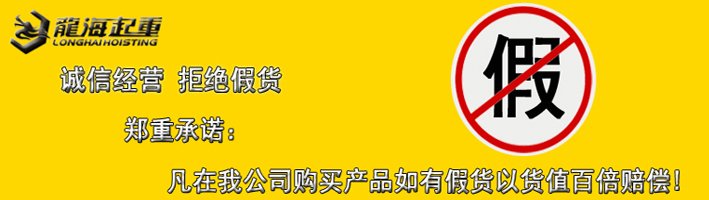 進口品牌均得到國內外大企業與設計院的認可和信賴。我公司鄭重承諾:凡客戶從我公司訂購的該品牌產品,如收到貨物時發現有假貨、仿貨均以產品貨值的100倍金額賠償!假貨不僅損害消費者切身利益也淡化了市場誠信意識,為了您的切身利益,請廣大用戶選擇時認準龍海起重工具,以免造成不必要的損失!