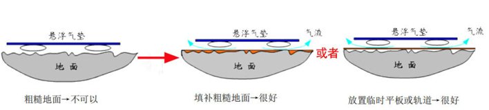 理想的地面是無縫地面,不過地面一般都會(huì)有一個(gè)明顯的缺點(diǎn):常常會(huì)出現(xiàn)裂縫。這些裂縫有可能導(dǎo)致氣體從氣囊下面泄露出去,結(jié)果使氣壓平衡系統(tǒng)遭到了破壞,無法在進(jìn)行運(yùn)輸了,必須用環(huán)氧樹脂或者類似的材料填平裂縫。如果裂縫直接存在著大于0.5mm的高度差,就必須對(duì)裂縫進(jìn)行打磨。