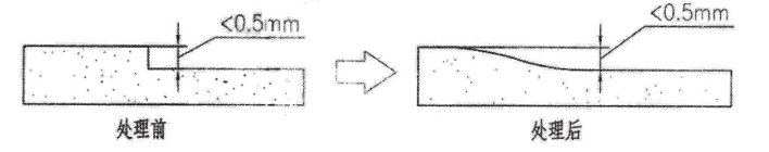 階梯高度如果超過0.5mm就必須磨平,棱角處必須光滑,具體處理方法如下圖: