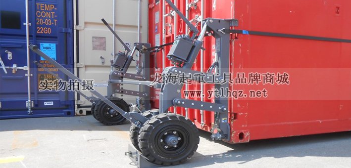 這款集裝箱短途轉運工具采用大輪子,類似于汽車輪胎樣式,可以在室外有石子的不平整路面搬運集裝箱,該產品一套4臺,載重12噸,提升高度為350mm(更多載荷、參數可定制可以咨詢我公司),分別安裝在集裝箱的四個角,相當于給集裝箱加了四個輪子,且無需千斤頂等起重工具,也能自行升降。