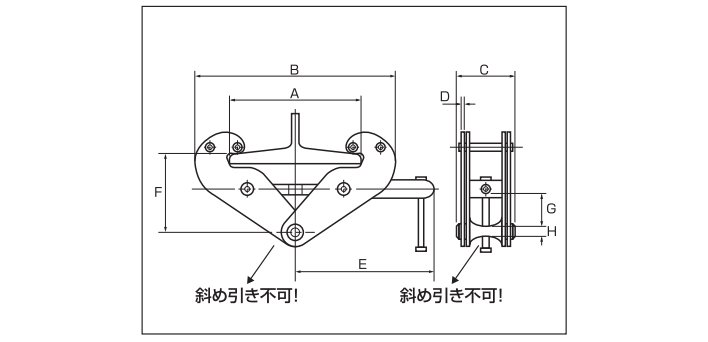 HHH BC型工字鋼夾鉗特點 ●HHH BC型工字鋼夾鉗是為了在梁(H型鋼、型鋼)上安裝連接點而制造的。請作為吊鏈擋板、手拉葫蘆吊掛以及手拉葫蘆橫向拉動用(不可斜拉); |
