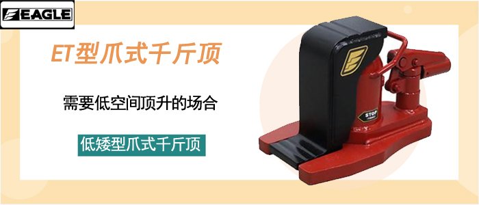 ET型爪式千斤頂,又叫低矮型爪式千斤頂,適用于高度受限制的場(chǎng)合使用。 【產(chǎn)品名稱】ET型爪式千斤頂 【產(chǎn)品品牌】日本EAGLE JACK鷹牌千斤頂 【產(chǎn)品保質(zhì)】保質(zhì)12個(gè)月 【產(chǎn)品定制】ET型爪式千斤頂可定制潔凈室型(鍍鎳規(guī)格)。 【應(yīng)用范圍】ET型爪式千斤頂適用于各種需要低空間頂升的場(chǎng)合,如維修設(shè)備、安裝管道等。