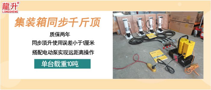 集裝箱同步千斤頂介紹: 【產(chǎn)品名稱】集裝箱同步千斤頂 【產(chǎn)品品牌】龍升品牌 【產(chǎn)品保質(zhì)】24個月 【產(chǎn)品專利】本產(chǎn)品是我公司專利產(chǎn)品,專利號ZL202422693425.7 【產(chǎn)品型號】LH1410G-EP 【產(chǎn)品定制】集裝箱同步千斤頂單臺載荷10噸,可定制噸位、行程、爪部厚度、無塵型、高精度同步頂升(誤差≤1mm)。 【典型應(yīng)用】常用于需要同步頂升的精密儀器搬運(yùn)、集裝箱運(yùn)輸、港口集裝箱搬運(yùn)、儲能柜運(yùn)輸,建筑工程、重型設(shè)備與機(jī)械等多個領(lǐng)域。 集裝箱同步千斤頂搭配組合式搬運(yùn)小坦克、集裝箱搬運(yùn)小坦克、電動搬運(yùn)小坦克使用。